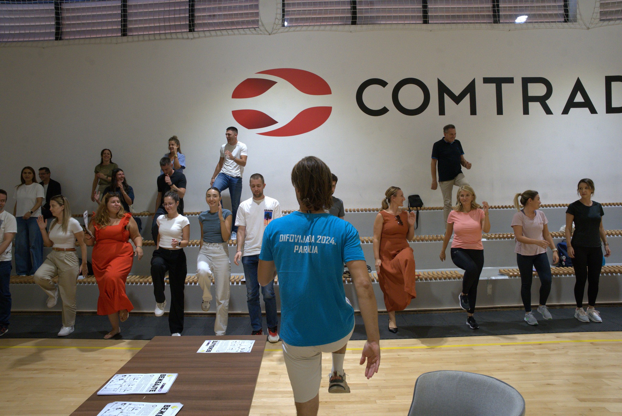 Имајући у виду да је 23. септембар био радни дан поред фитнес клубова, део активности смо усмерили ка школама и компанијама, којима смо представили могућности и значај вежбања на радном месту, а за ову прилику одштампан је и лифлет са предложеним сетом вежби. Као пример добре праксе вреди истаћи сарадњу са IT компанијом Comtrade из Београда. У спортској Сали, у оквиру Comtrade комплекса, реализован је низ активности међу којима су биле и тестирање запослених апаратом Cardioscan који мери кардиоваскуларни стрес индекс, демонстрацију вежбе на радном месту уз поделу лифлета са предложеним сетом вежби и total body workout вежбе.